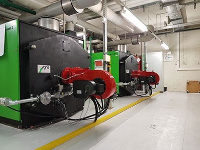 2 X Zweistoffbrenner mit Schaltschrank und Siemens S7 Steuerung für die Wärmeverteilung.